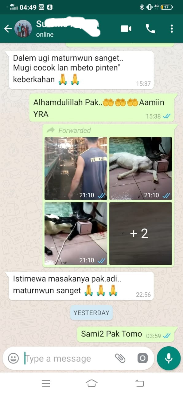 360 tusuk sate atau 180 porsi gulai/tongseng, dan