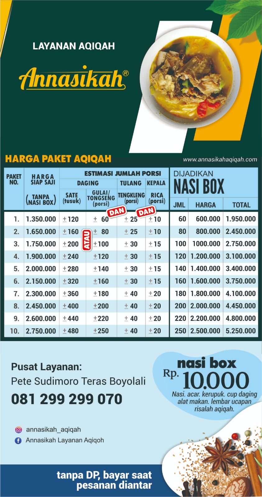 Harga Siap Saji (Per Satu Ekor Kambing) & Estimasi Jumlah Porsi